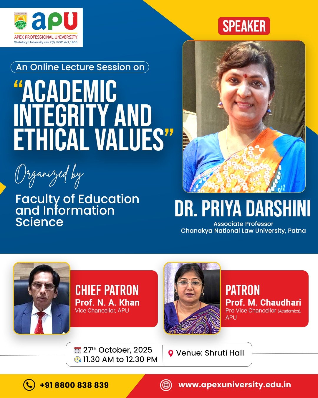 - An Online Lecture Session on "ACADEMIC INTEGRITY AND ETHICAL VALUES" - 27th Oct 2025
